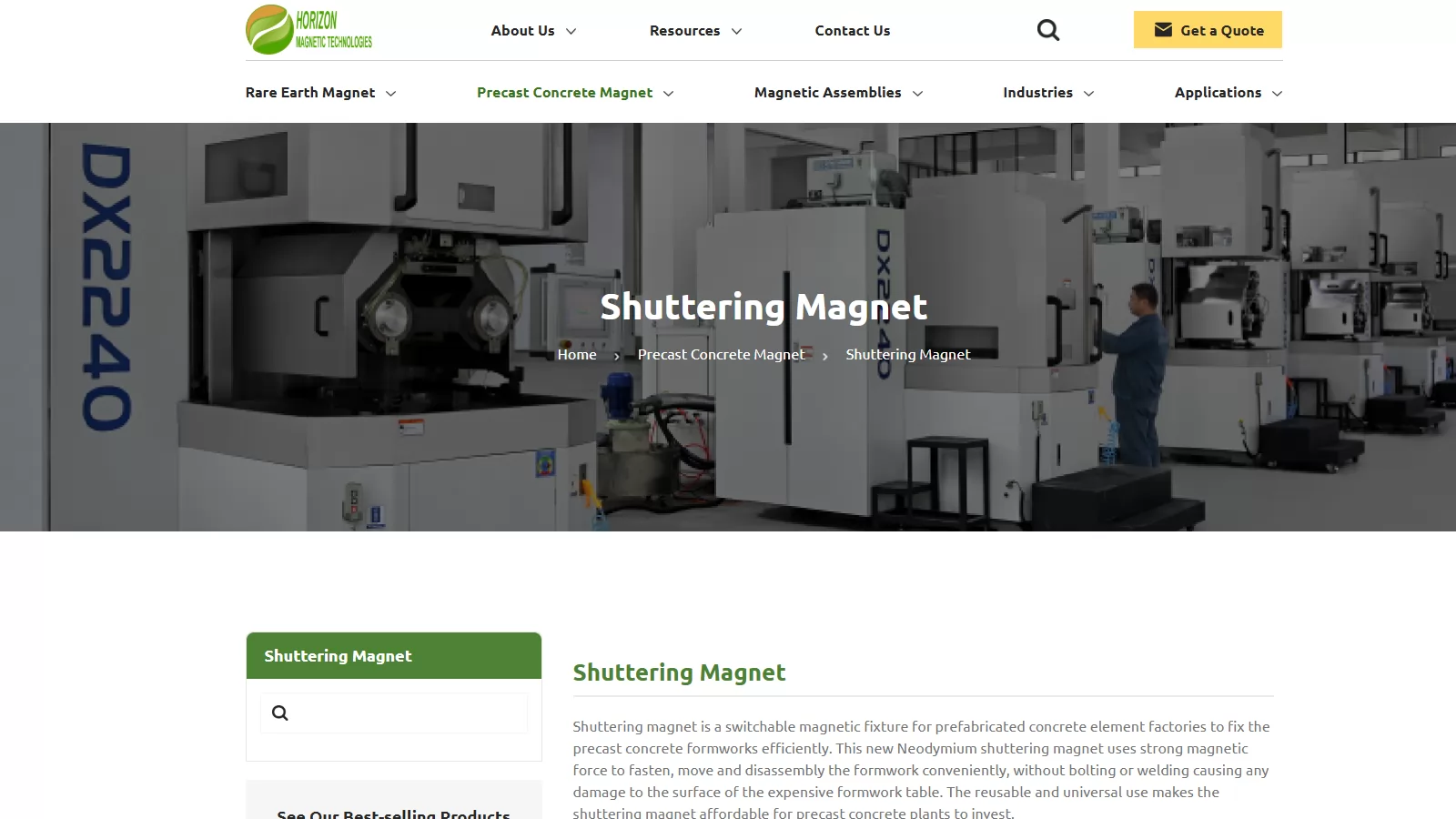 Ningbo Horizon Magnetic Technologies Co., Ltd., known as Horizon Magnetics, is a vertically integrated Chinese manufacturer specializing in rare earth Neodymium (NdFeB) and Samarium Cobalt (SmCo) magnets, with a strong focus on magnetic assemblies for the precast concrete industry. Founded in 2011 amid volatile rare earth markets, the company addresses supply chain disruptions by providing stable, high-quality shuttering magnet solutions. As a premier shuttering magnet manufacturer and supplier, Horizon Magnetics produces over 500 tons of Neodymium magnets annually, enabling efficient, reusable formwork systems that eliminate traditional fastening issues like hammering or table damage. Their medium-sized scale ensures agile responses, in-house production, and just-in-time delivery of shuttering magnets and related precast concrete magnets to global markets, including Europe, North America, and Asia.